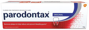 パロドンタックス オリジナル (Parodontax Original Toothpaste)は、フッ化物を望まない、またはフッ化物にアレルギーのある人に適している歯磨き粉です。フッ化物が含まれていませんが、歯茎の出血を引き起こす可能性のある細菌を除去し、歯茎を健康に保ち、息を新鮮に保ちます。フッ化物が含まれていなくても、歯垢の蓄積を減らすのを助けるのに効果的で、ハーブの風味を与え、歯茎の健康維持に役立つ独自の成分を配合した歯磨きです。歯垢の蓄積によって引き起こされるブラッシング中の歯茎の出血を減らすのに役立ちます。
